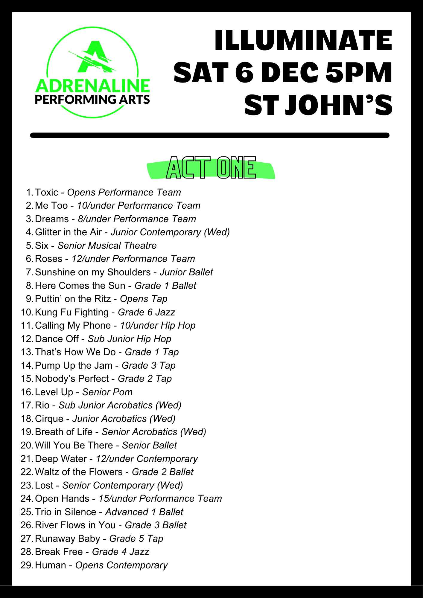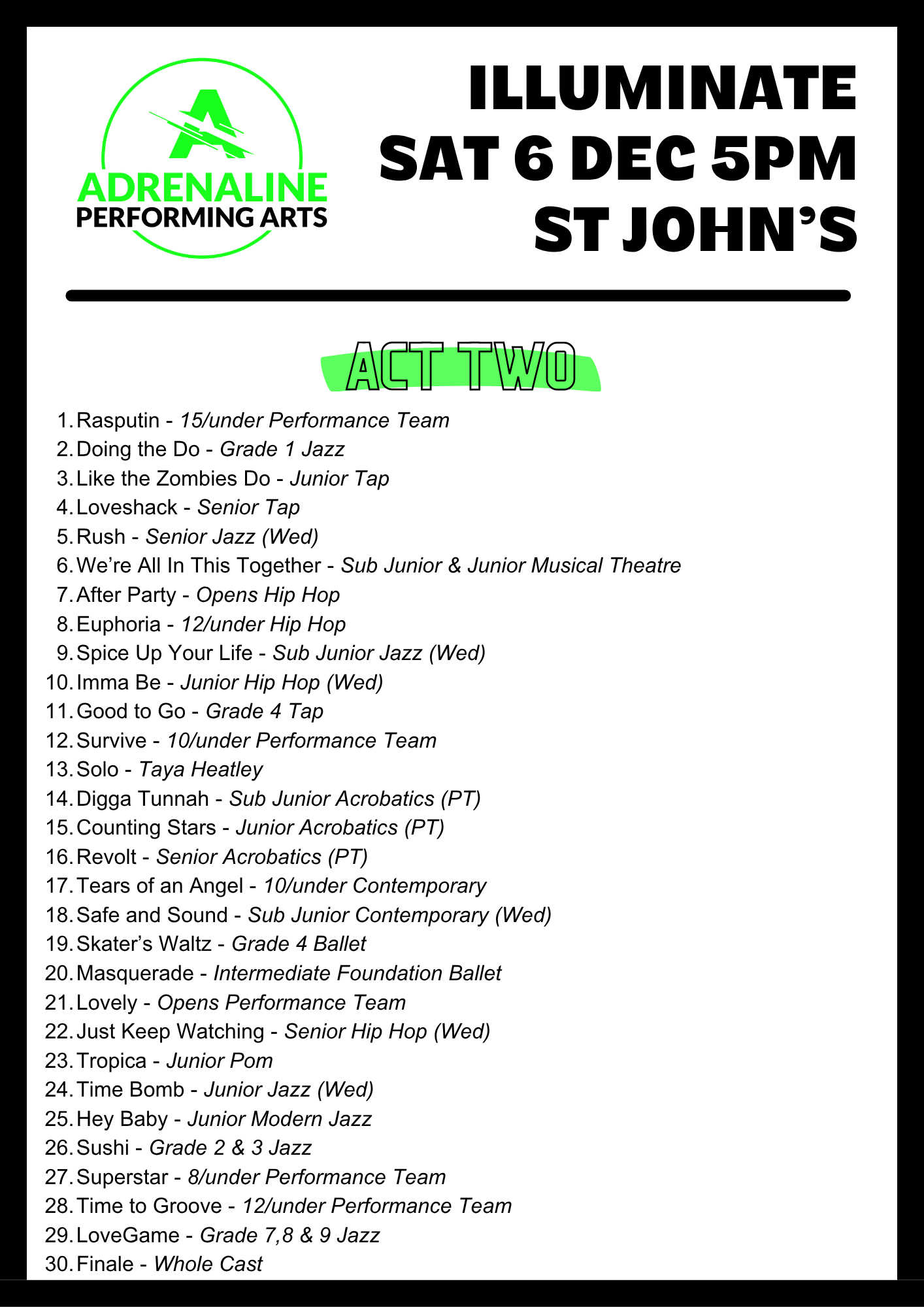 PLEASE REFER TO THIS TO KNOW WHICH ACT YOUR CHILD IS IN FOR REHEARSALS.
